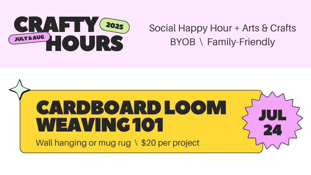 Learn to weave with a cardboard loom! In this crafty hour, you’ll have all the materials and instruction to weave your own mug rug or BOHO-style wall hanging. Stay for some solo crafting, or bring your family and friends! This activity is kid-friendly with some parent supervision.